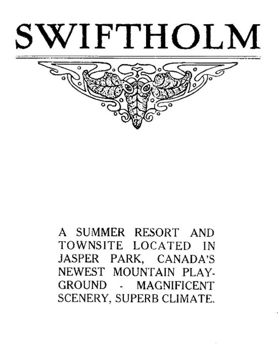 Swift applied for a patent on his land so that, when Jasper became a Forest Park in 1907, the government could not evict him as they did the Métis families who had settled along the Athabasca River. Swift realized the value of his land especially because of its proximity to the newly built railway lines and decided to enter into a partnership with the President of the Grand Trunk Pacific Railroad, Charles Hays. They drew up a brochure to advertise their Swiftholm development and hoped it would appeal to city dwellers who wanted a summer home in the Rocky Mountains. Unfortunately, Charles Hays was one of the many passengers who did not survive the sinking of the Titanic and the dream of Swiftholm was never realized.